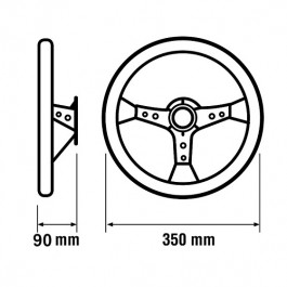 Diámetro de 350 mm y desplazamiento de 90mm.