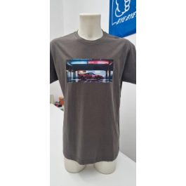Camiseta Bondstickers gris oscuro, con diseño propio “Coche deportivo" en impresión DTF tanto en la parte delantera como en la trasera, de manga corta, cuello redondo y en 100% algodón. Gramaje de la camiseta 155 g/m² aprox. Se recomienda lavar en frío y planchar del revés para una mayor duración. UNISEX.