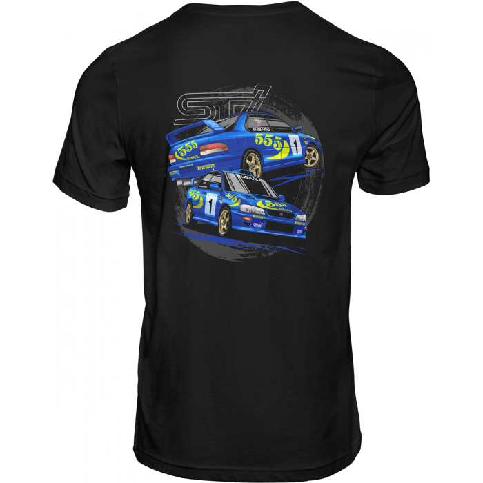 Camiseta Bondstickers negra, con diseño “Subaru STI” en impresión DTF tanto en la parte delantera como en la trasera, de manga corta, cuello redondo y en 100% algodón. Gramaje de la camiseta 155 g/m² aprox. Se recomienda lavar en frío y planchar del revés para una mayor duración. UNISEX