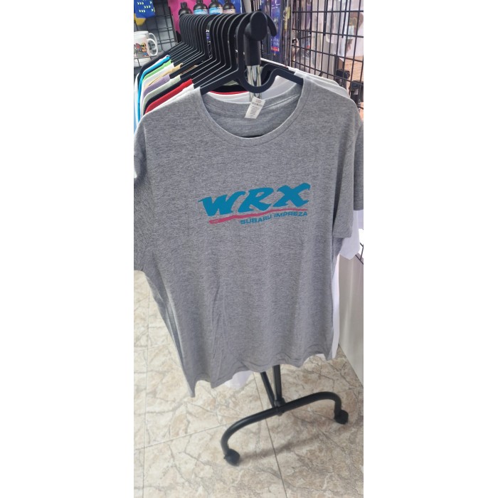 Camiseta Bondstickers gris, con logotipo “WRX” en impresión DTF en la parte delantera, de manga corta, cuello redondo y en 100% algodón. Gramaje de la camiseta 155 g/m² aprox. Se recomienda lavar en frío y planchar del revés para una mayor duración. UNISEX