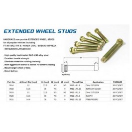 HARDRACE now provide EXTENDED WHEEL STUDS for all popular vehicles. Including FT-86 / BRZ / FR-S / HONDA CIVIC / SUBARU IMPREZA / MITSUBISHI LANCER EVO, etc..
