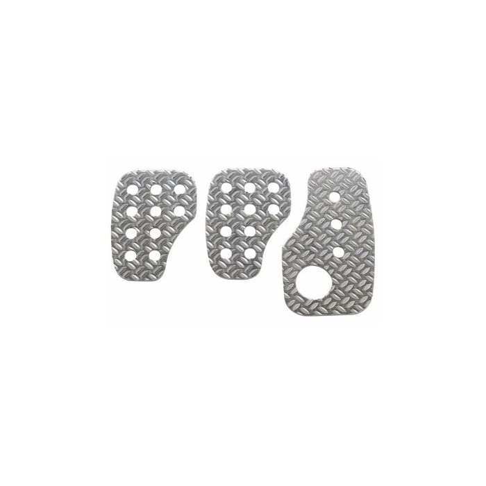 Espesor de 2,5 mm pre-curvada moleteada pedales de aluminio adecuado para uso rally. Ya perforado y avellanado y puede ser en forma de, según sea necesario. Completo con tornillos y tuercas.