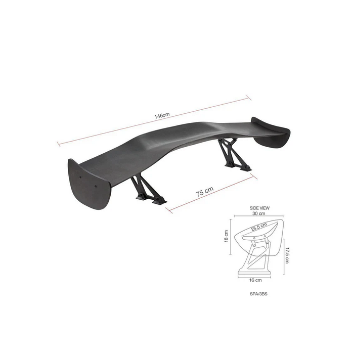 Alerón de maletero de una sola ala de PU Zeus Ala simple en ABS negro, dimensiones: 146x27x30cm