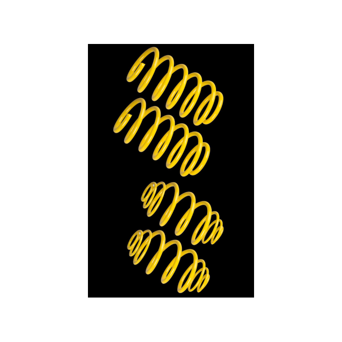 Fabricado en acero cromado-silicio, en un proceso de enrollado en frío. Los muelles deportivos ST están multirevestidos con epoxy, asegurando definitivamente, una calidad de primer nivel, tanto en equipamiento como acabado. Como resultado, son capaces de soportar, la variedad de condiciones climáticas durante todo el año. Dependiendo del modelo de vehículo, los muelles deportivos ST, proporcionarán un rebaje de alrededor de 20 mm en el eje delantero y 15 mm en el eje trasero. Algunos vehículos pueden alcanzar un mayor rebaje como el Golf Mk1 de 60 mm en el eje delantero y trasero. En comparación con la suspensión estándar, los muelles deportivos ST bajan el centro de gravedad, para proporcionar una mejor dinámica de conducción y manejo. Además, la compresión y el rebote, también se reduce, lo que permite conducir el coche de manera más ágil, con un reducido balanceo de la carrocería. |
